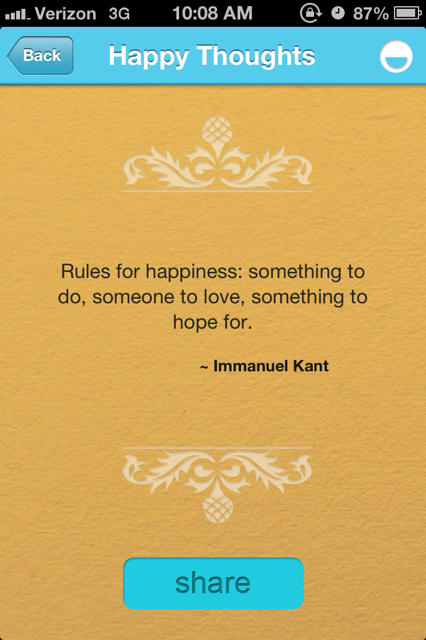 Go out and find your something to do, someone to love, and something to hope for. It is by far the simplest way to find happiness.