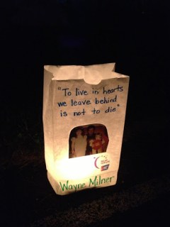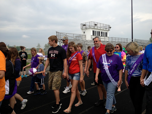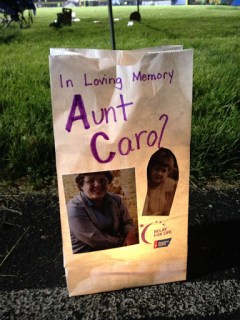 We celebrated the survivors in our lives who are still with us. Some still fighting. My uncle, my great aunt, my friend, a former student, a family friend, a little boy I’ve heard so much about. All these people surviving this battle we call cancer and doing their best to kick butt. They took a lap with their caregivers behind them. How meaningful is that? Those who have cared and supported them throughout this awful journey continued to “have their back” as they journeyed around the track for Relay.
