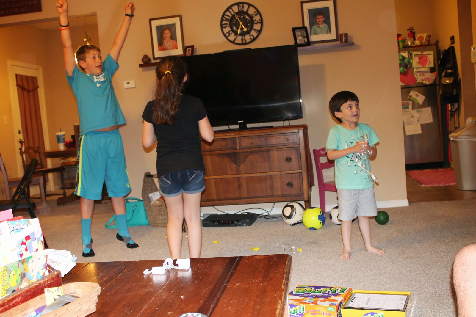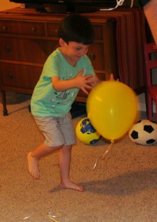 It was hard to find a “game” to tell them but I decided on some good ole fashioned balloon popping. They were actually excited to pop balloons!