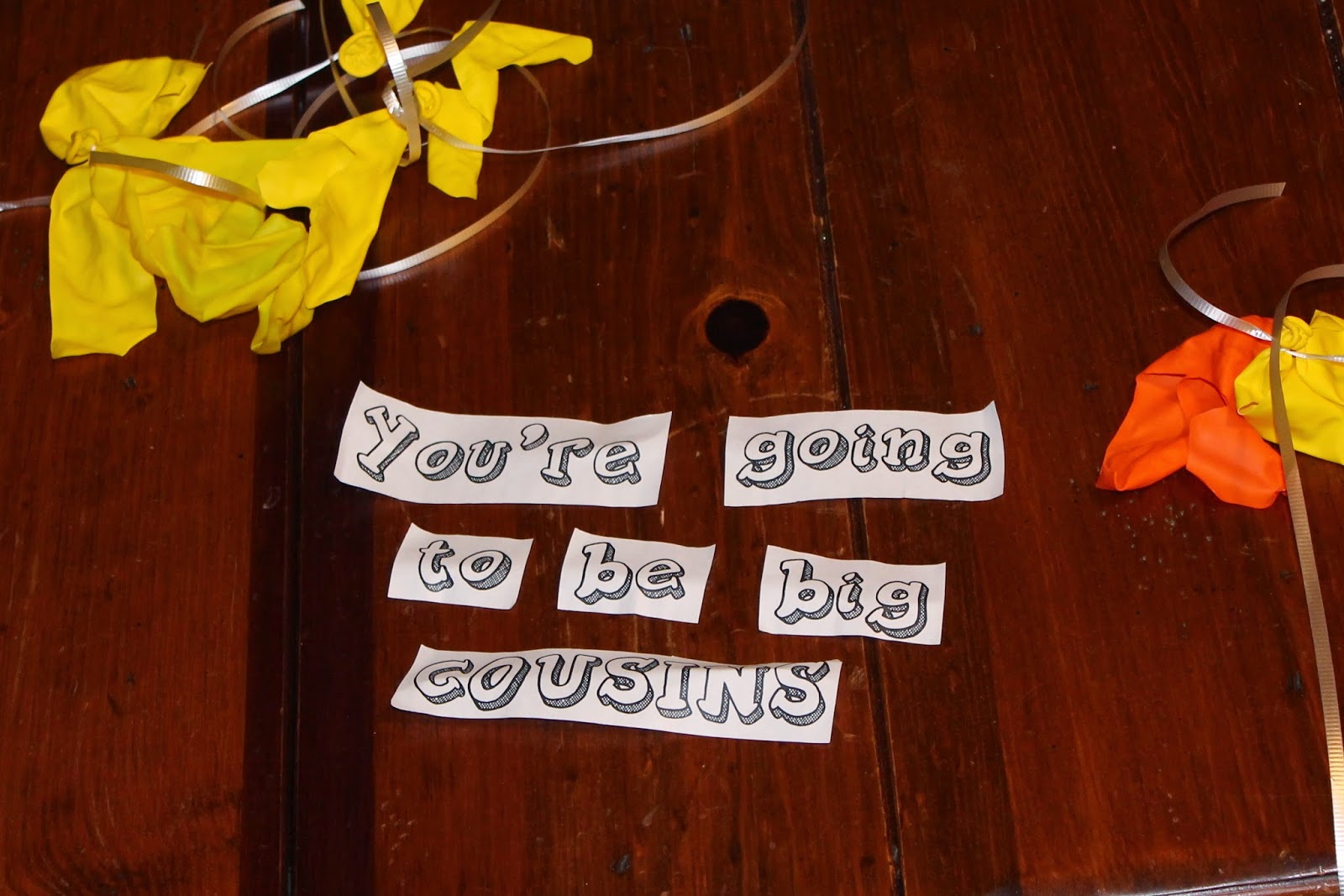 Inside each balloon was a word for the final message, “You’re going to be big cousins.”