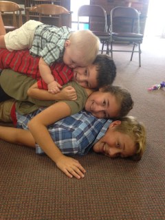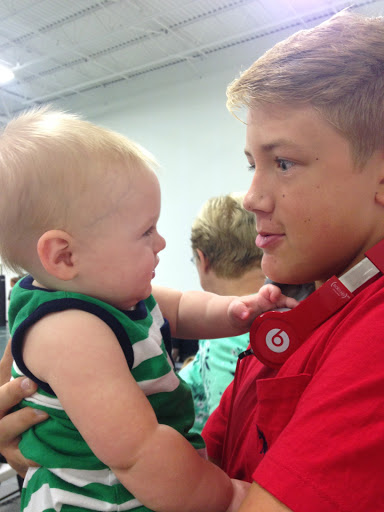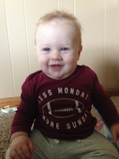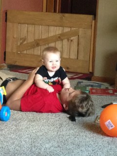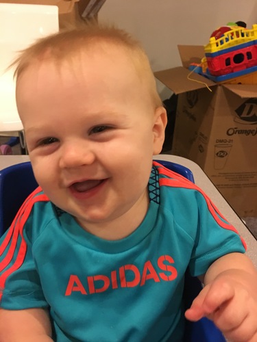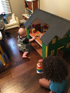 started getting out all the toys in the living room even though he still enjoys the good ole TV remote. At Mrs. Jenny’s he really loves the kitchen and play food so momma’s going to get him a new kitchen for his birthday. Shhhh!