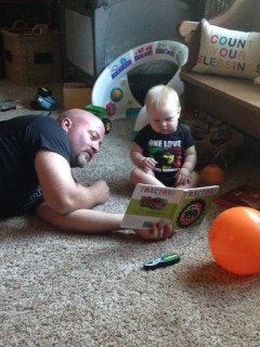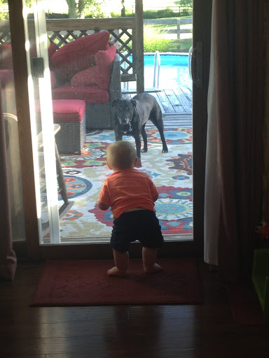 | Easton’s 1st Tornado Warning….we hid in the bathroom for at least a half hour…with the dog. It wasn’t real enjoyable but we made the best we could out of it! |