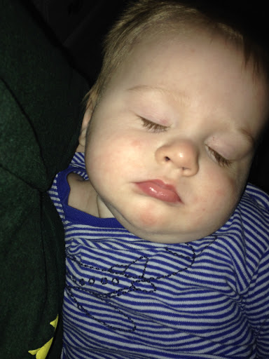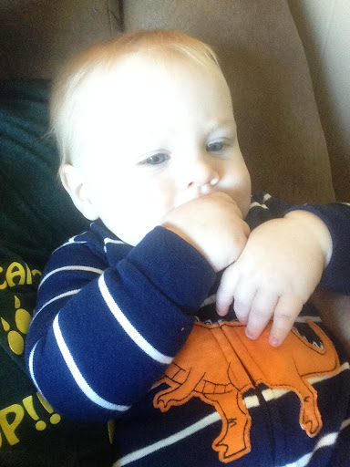 He weighed in at home at 22 lbs. 14 oz. so he’s been sitting at that 22 range for a few months. Major movement all day long has him starting to thing out.