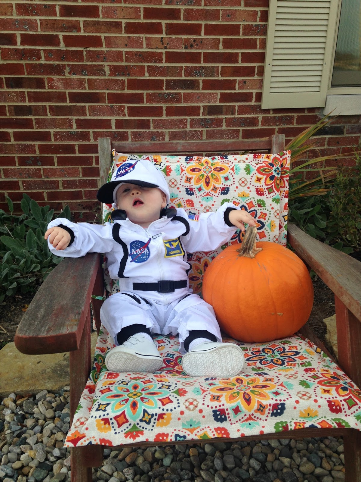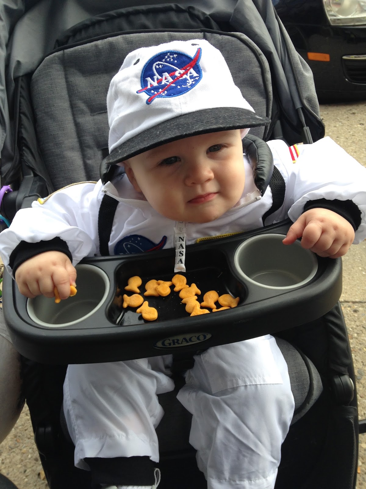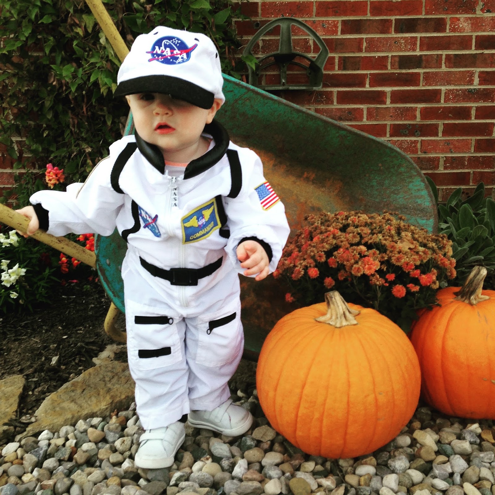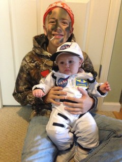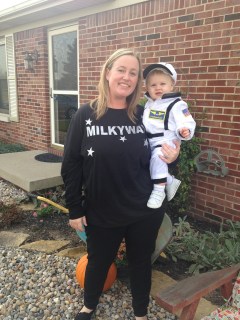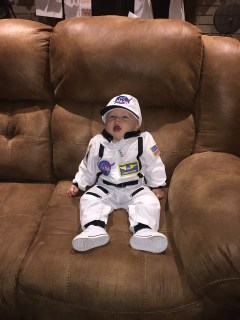 - had his first Halloween. We tried the cute and fuzzy wolf costume and he had a great howl down…but he was terrified of the costume. So, he was an astronaut! I was the MilkyWay and daddy was “Houston” as in “Houston, we have a problem.”
