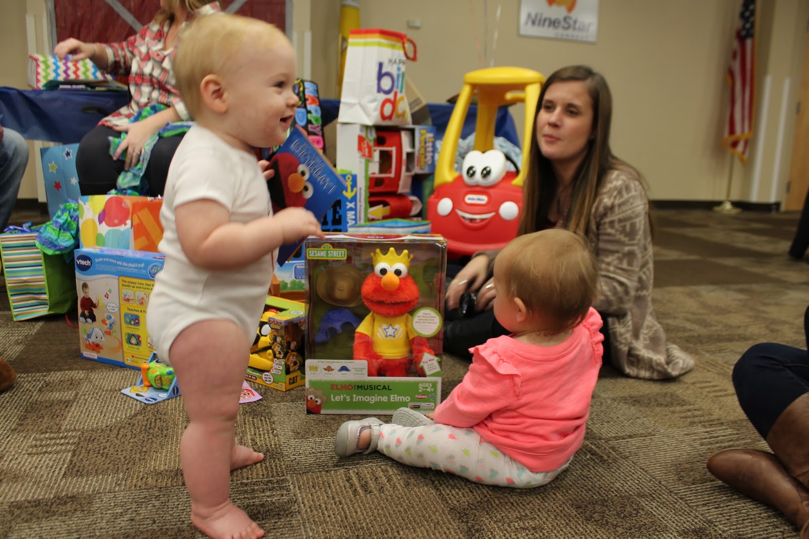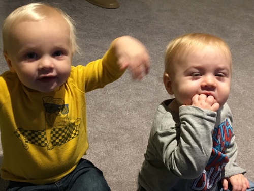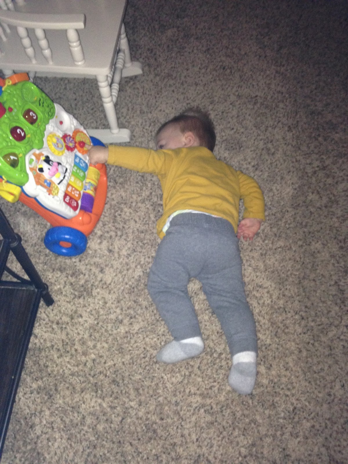 - learned to walk – He’s no pro, but he’s getting pretty darn good at it. When he falls he let’s out a giant grunt of disgust. Almost like he’s saying “awwww &*$# it!” His first couple steps were at home with momma and daddy but they were just a couple at a time. THEN the night that Gentry was born (November 2nd) he decided to shock us all and casually walk from Mamaw to Papaw Plank out of no where. So, of course we grabbed some bribery tools and got him going back and forth between the aunts with some snacks to guide him and videoed it!
