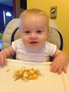 - gets upset over the loss of food. Example – I like Oreos. I don’t like to share Oreos. Easton does NOT like it when I take the last bite. See above.