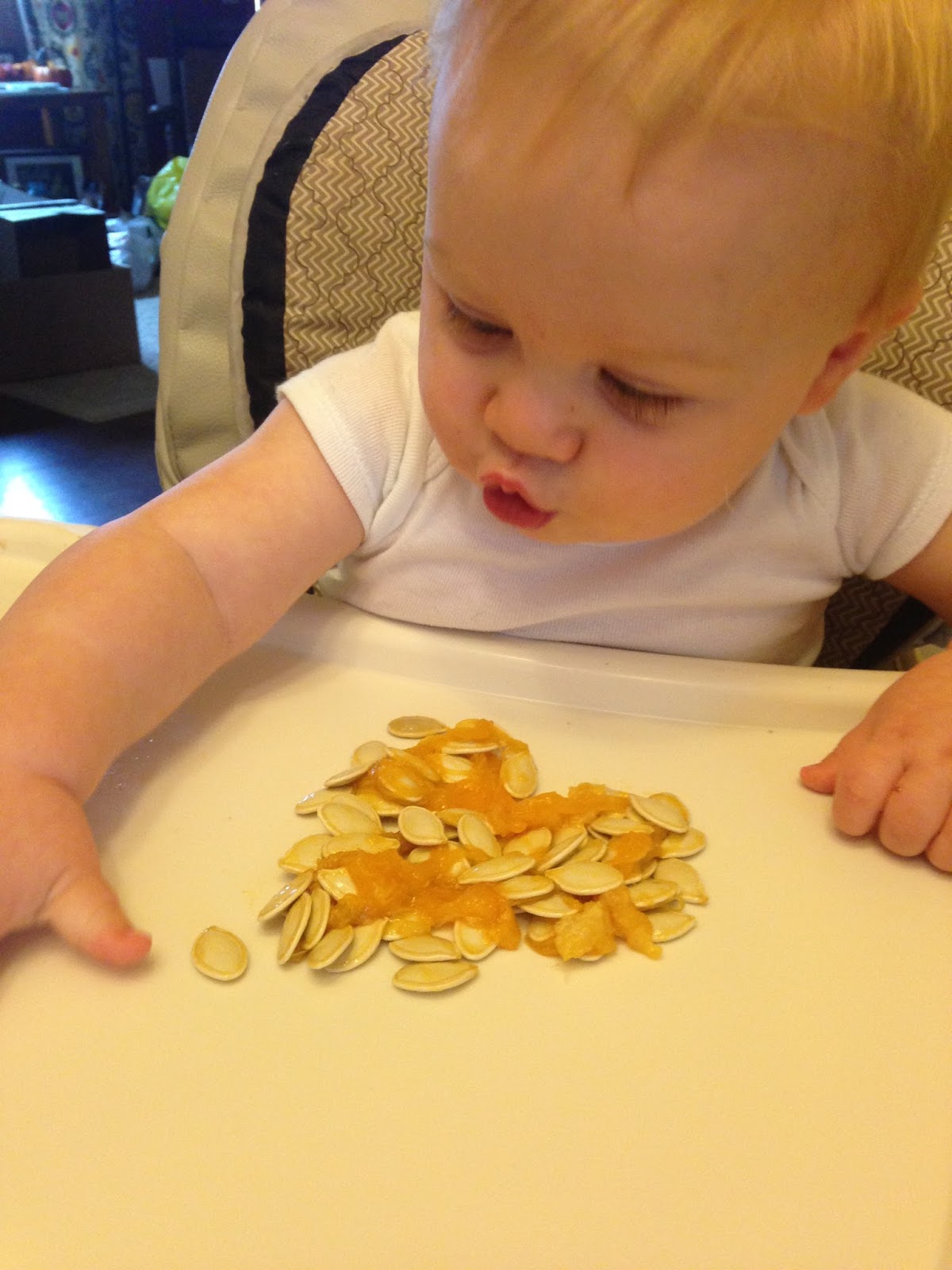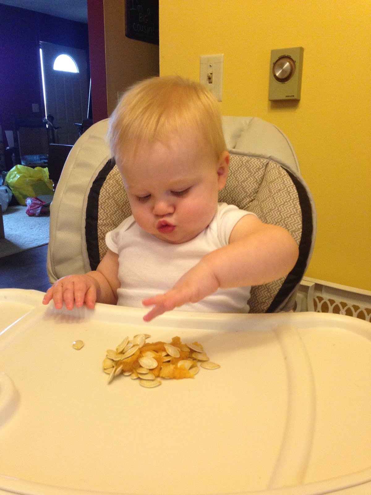 - hates being strapped in his car seat unless there is a snack to occupy him and eating out is becoming more difficult. Without a dog to pick up the food he throws it gets a little embarassing.