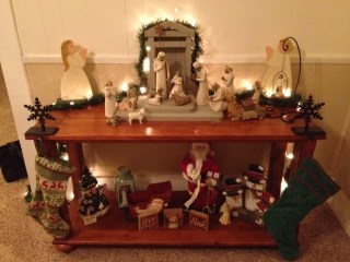 The next day we located them all in the barn. I brought them to our house. Went through them and placed things around the house. We are now officially “full” of Christmas decorations between hand me downs from family, my mom’s collection, and my own things I’ve purchased throughout the years.