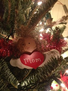 | I made this a LONG time ago at church. Now she is our angel. It’s at the top of the tree. |