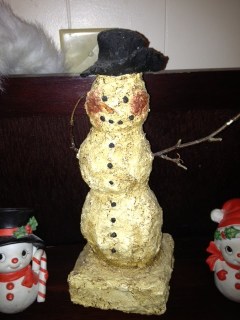 | Another snowman from her collection that I love, and that is also barely hanging on. |