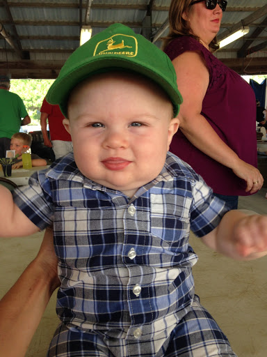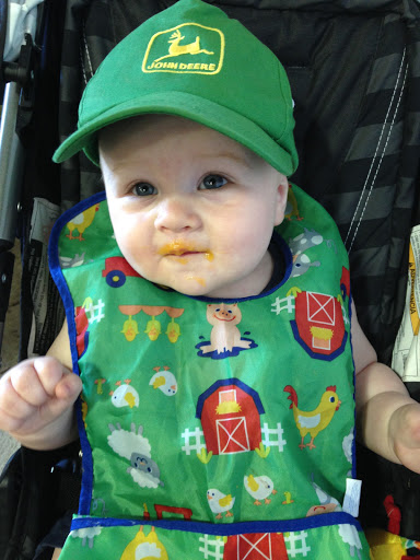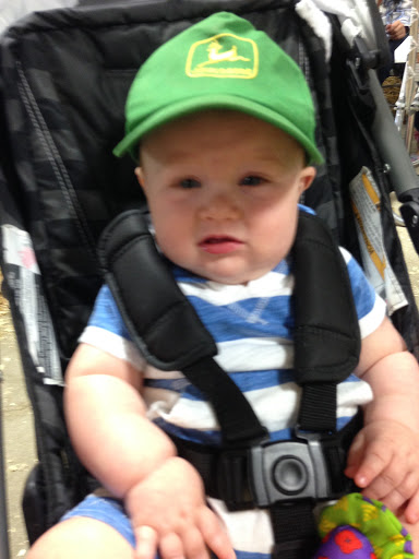At the County Fair he participated in his first ever Baby Contest. He went for Happiest Baby and Best Costume and only came home with a participants ribbon which I found to be a crock of sh** but whatever.