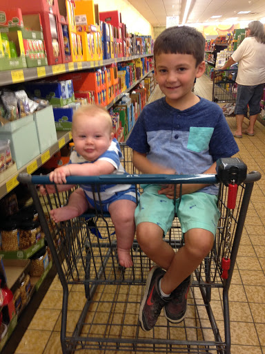 We took a quick trip to Aldi’s for some canned food for the food drive and E really loved sitting like a big boy in the cart with Brody Boy.