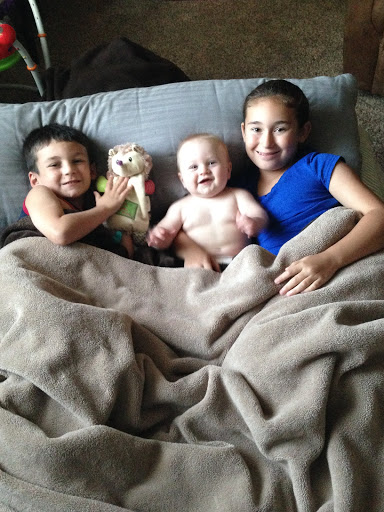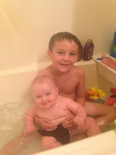 Then Aunt Kiki started not feeling so great from her dang kidney stones (finally gone) and E got to spend LOTS of time with his cousins. They stayed the night and took baths together. He loved every minute of having them over.