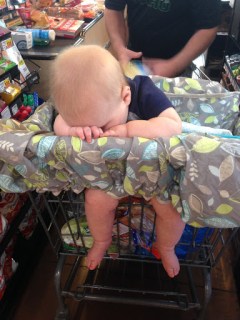 Sometimes momma takes him to the grocery when he is a little bit tired. So this finally happened….