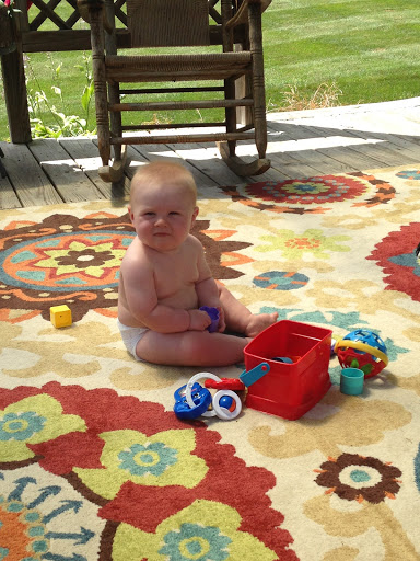 And we spent most afternoons at Aunt Kiki’s house to take a nap. He loves her fuzzy blanket and curling up naked on the floor to relax.