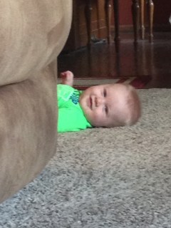 Before he turned 8 months and those too teeth came in I really wanted a tooth pic. I’d been trying to get one all month long with no luck. I wrestled him to the ground. It began with laughter and ended with tears.